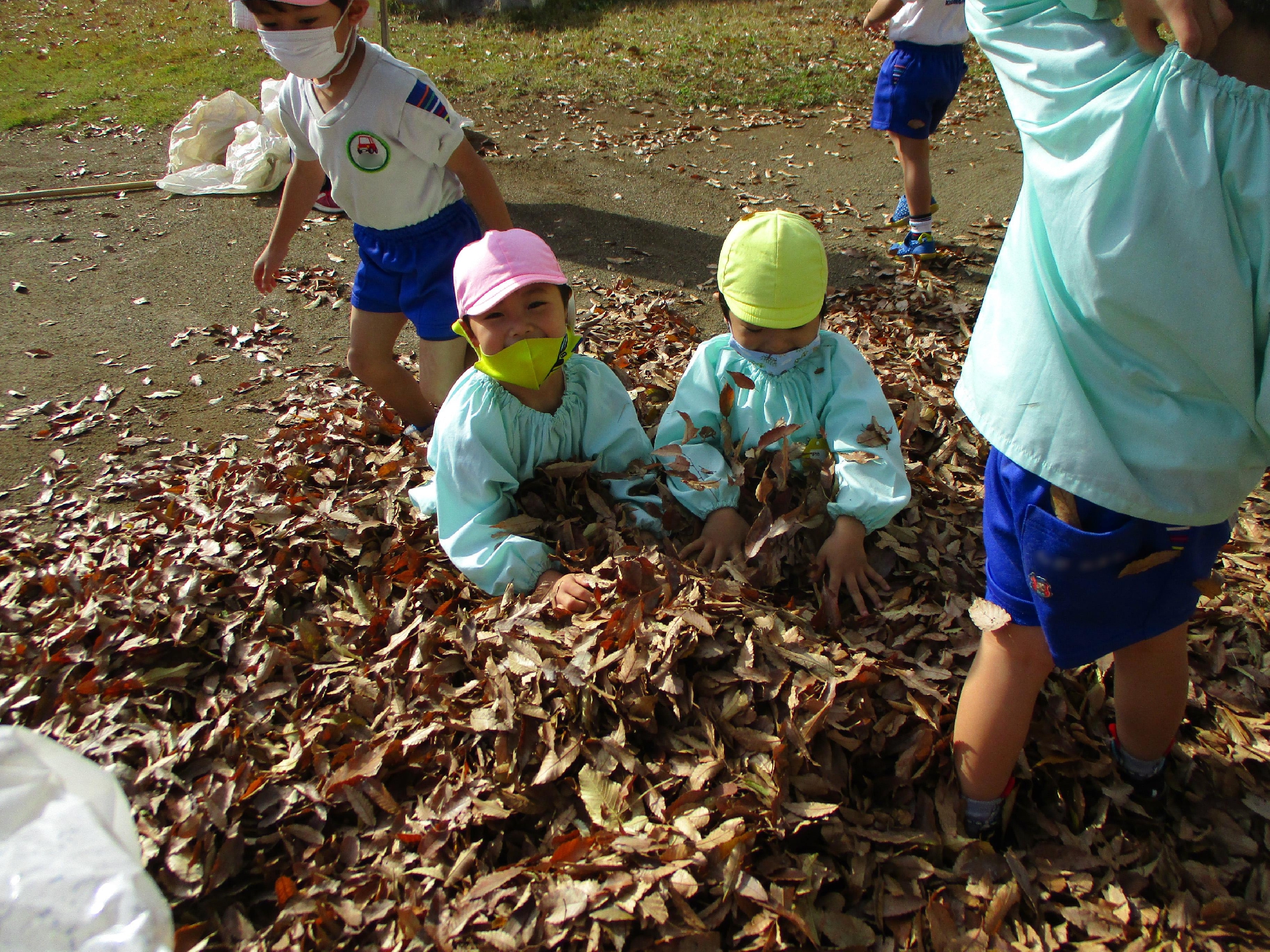 落ち葉で遊びました