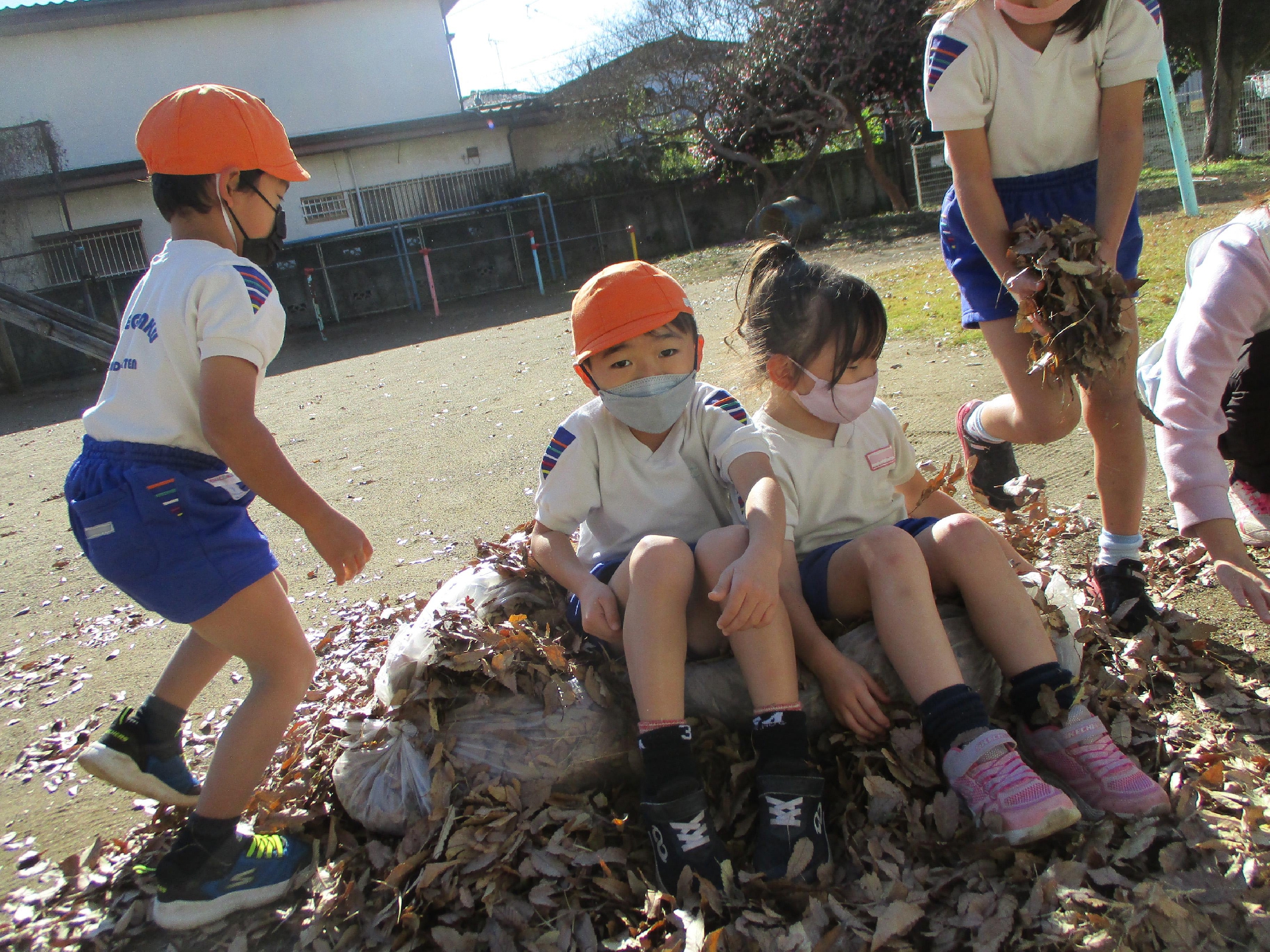 今日も落ち葉で遊びました。落ち葉の山に『ダイブ~!!』です。