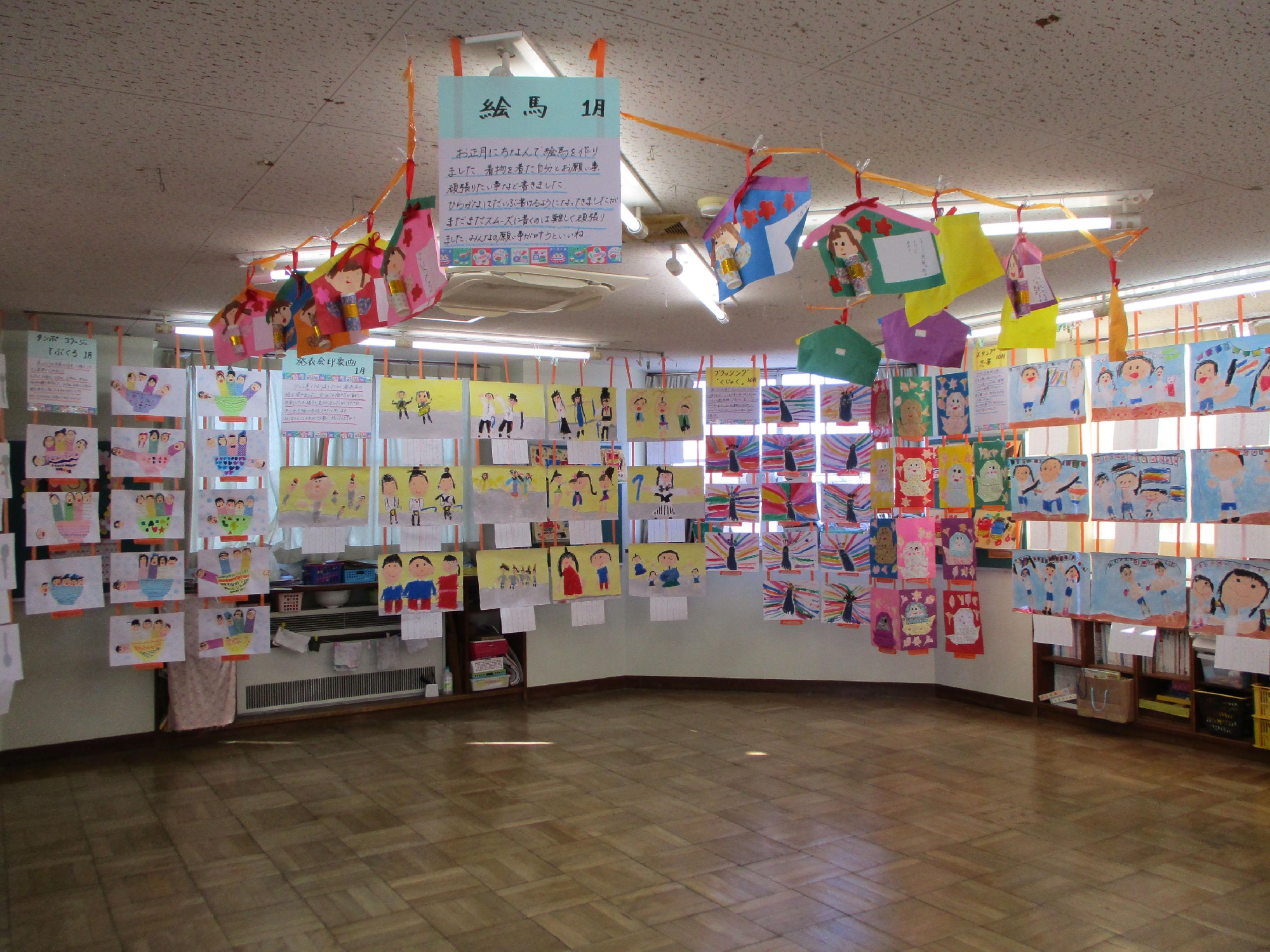 年少組です。可愛らしい作品が沢山出来ました。年少さんらしい、何とも言えない個性が出ていますね!!
