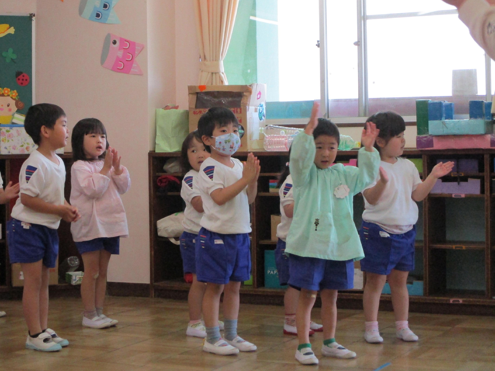 今日は5月のお誕生日会をやりました。その月に生まれたお友だちが、みんなの前でお名前を言って、「お誕生日おめでとう!」と言葉のプレゼントをもらいます。先生が作ってくれたお祝いのメダルもとっても似合ってますね。