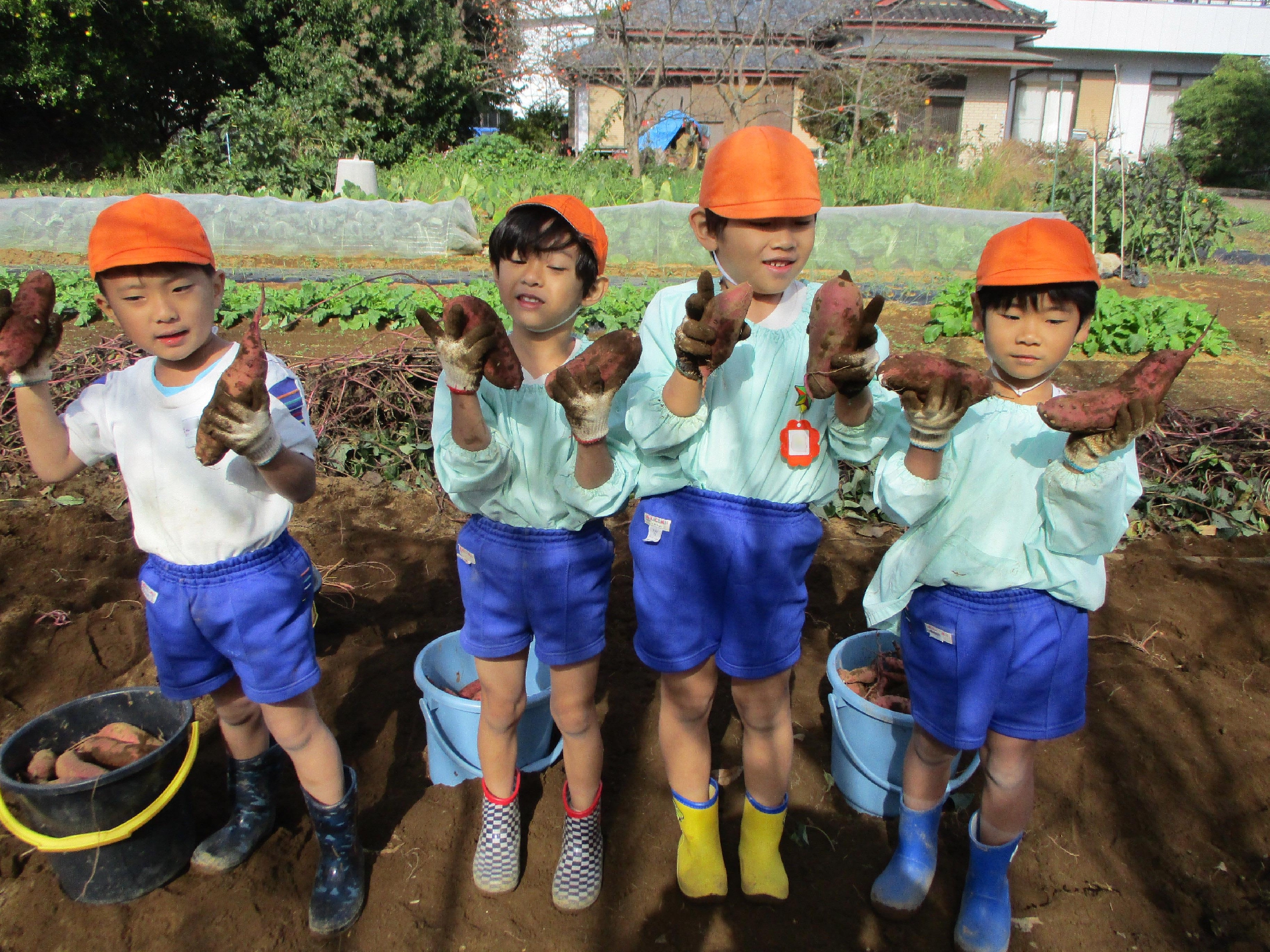 こんなにいっぱいお芋が採れました。大きくてとってもおいしそう!幼稚園で待ってるみんなへ、素敵なお土産になりましたね。