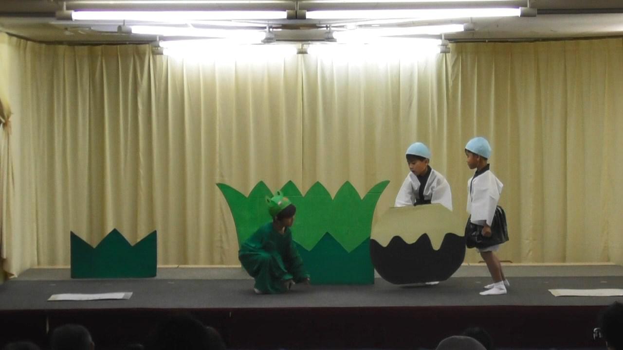 年長組の言語劇です。舞台に立って自分だけで声を出していくのは、緊張や恥ずかしさもありましたが、頑張ってやりきる事ができました。