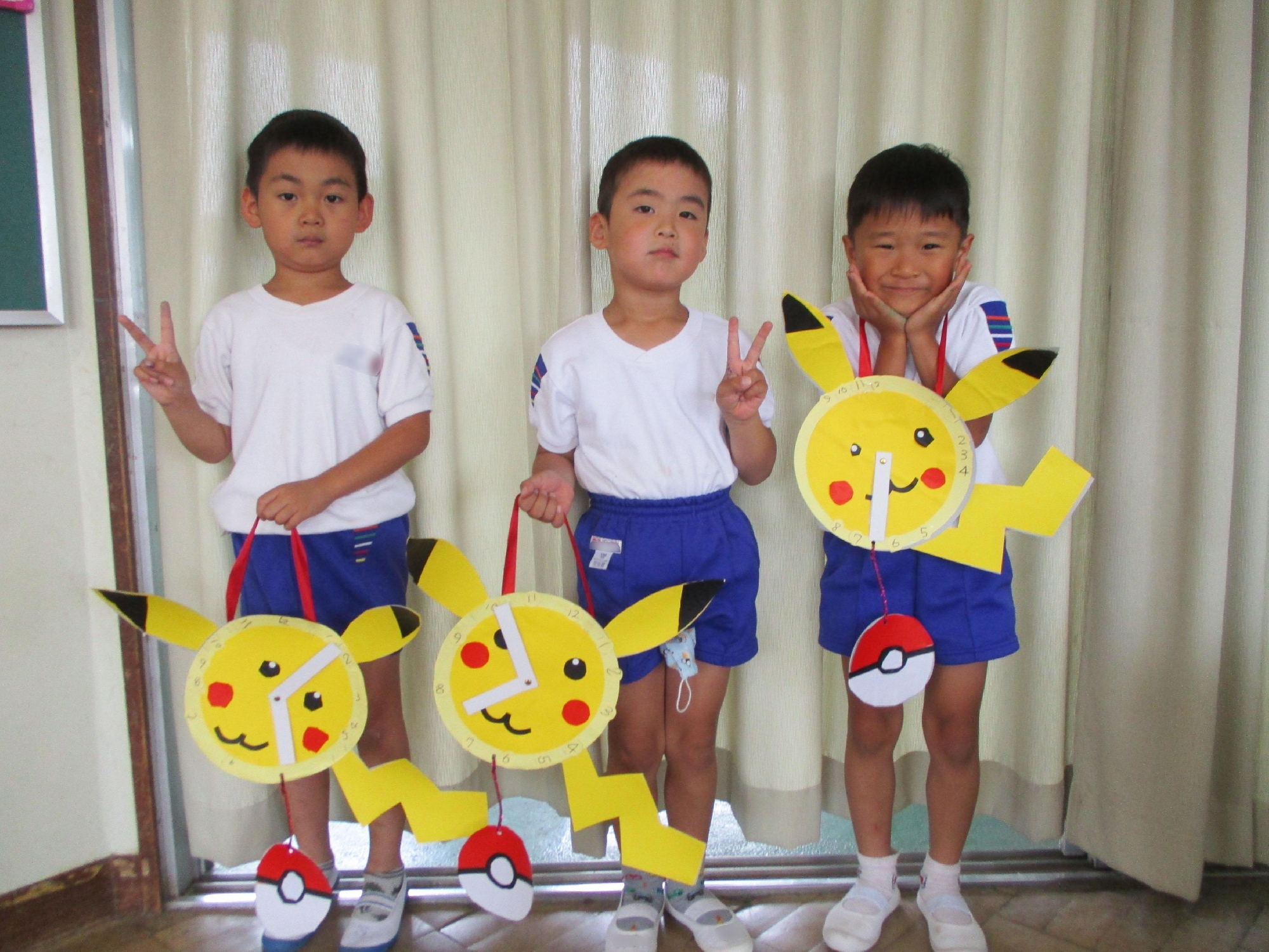 ひまわり組の時計はポケモンです。目やほっぺたの細かいパーツまで自分で作り、文字盤の数字も書きました。がんばって完成させた手作り時計は自慢の作品です。