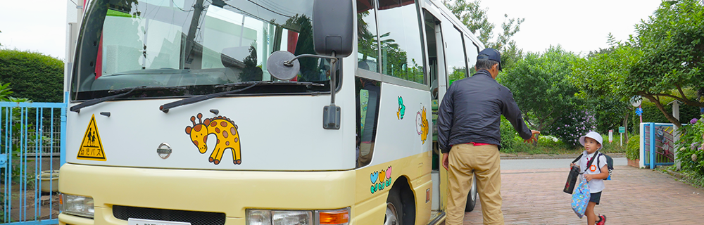 当園では園児の安全を期すため、スクールバスの運行を致します。バス利用により交通ルールや、その他色々なきまりを守り、日常の事故の防上に役立つよう指導にあたります。送迎中又は保育中に事故を起こさないよう万全を期しておりますが、万ーを考慮して交通災害保険・幼稚園賠償責任保険に加入しています ※保険料園負担