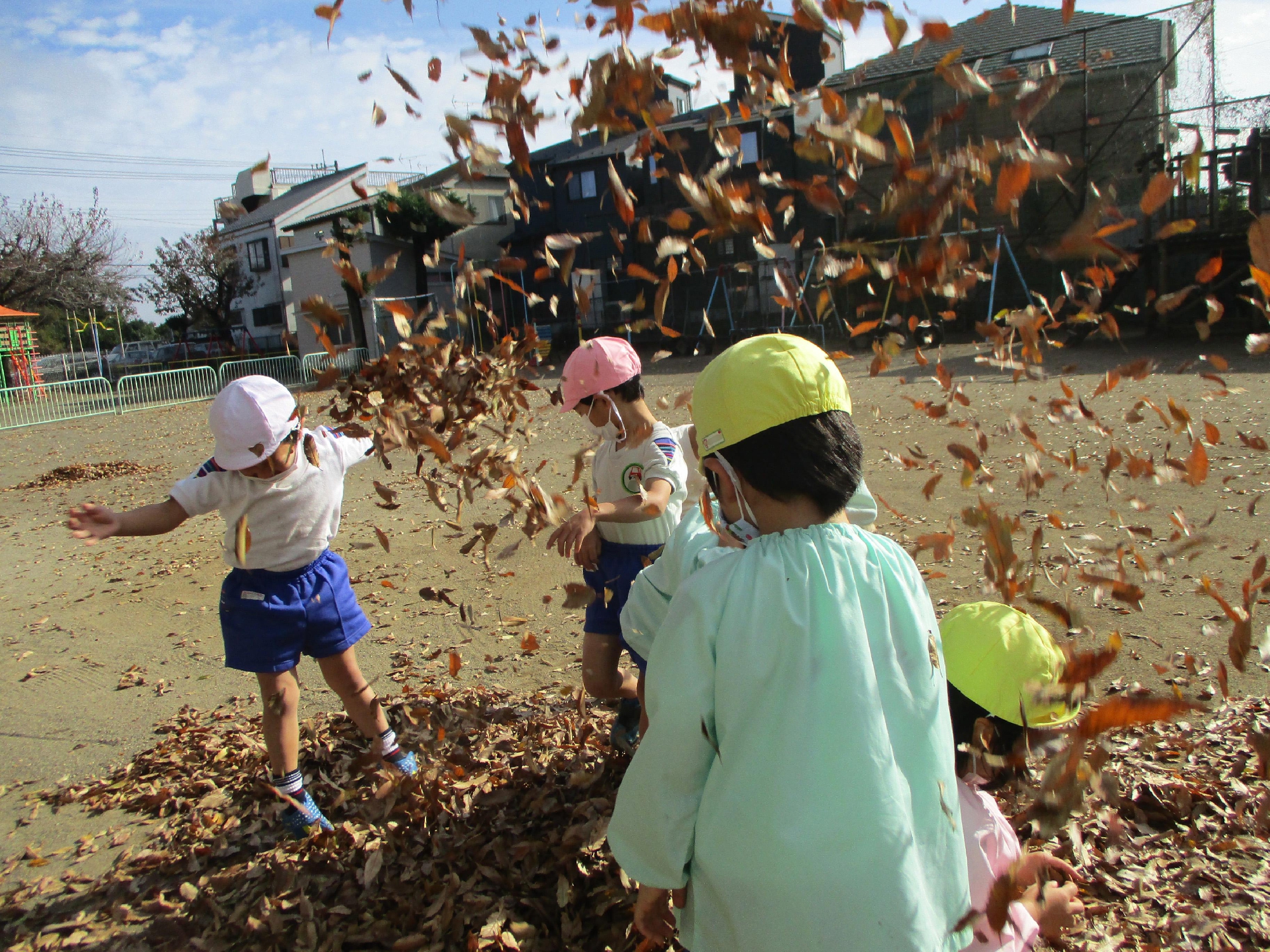 落ち葉で遊びました