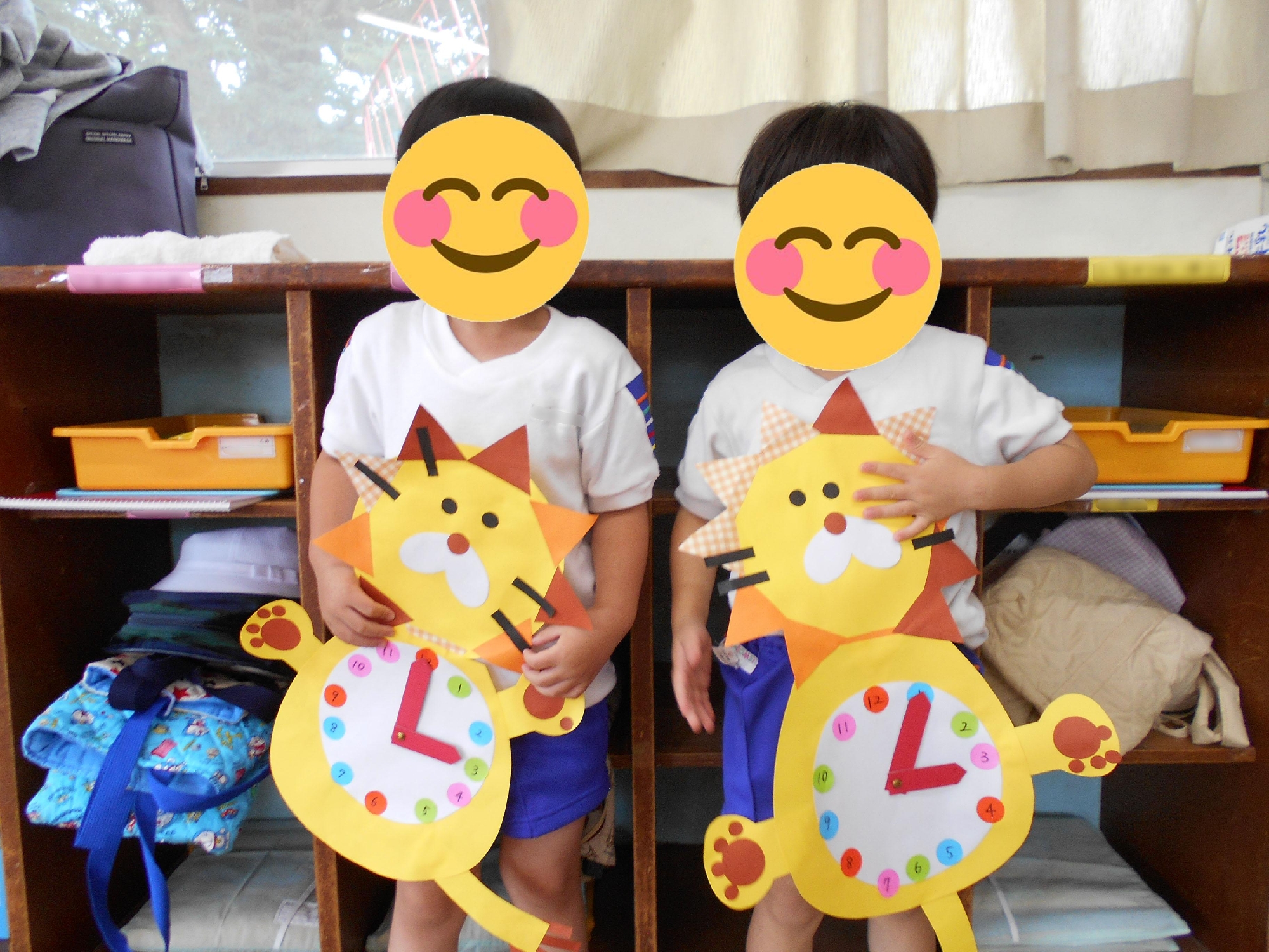 ひまわり組の時計はポケモンです。目やほっぺたの細かいパーツまで自分で作り、文字盤の数字も書きました。がんばって完成させた手作り時計は自慢の作品です。