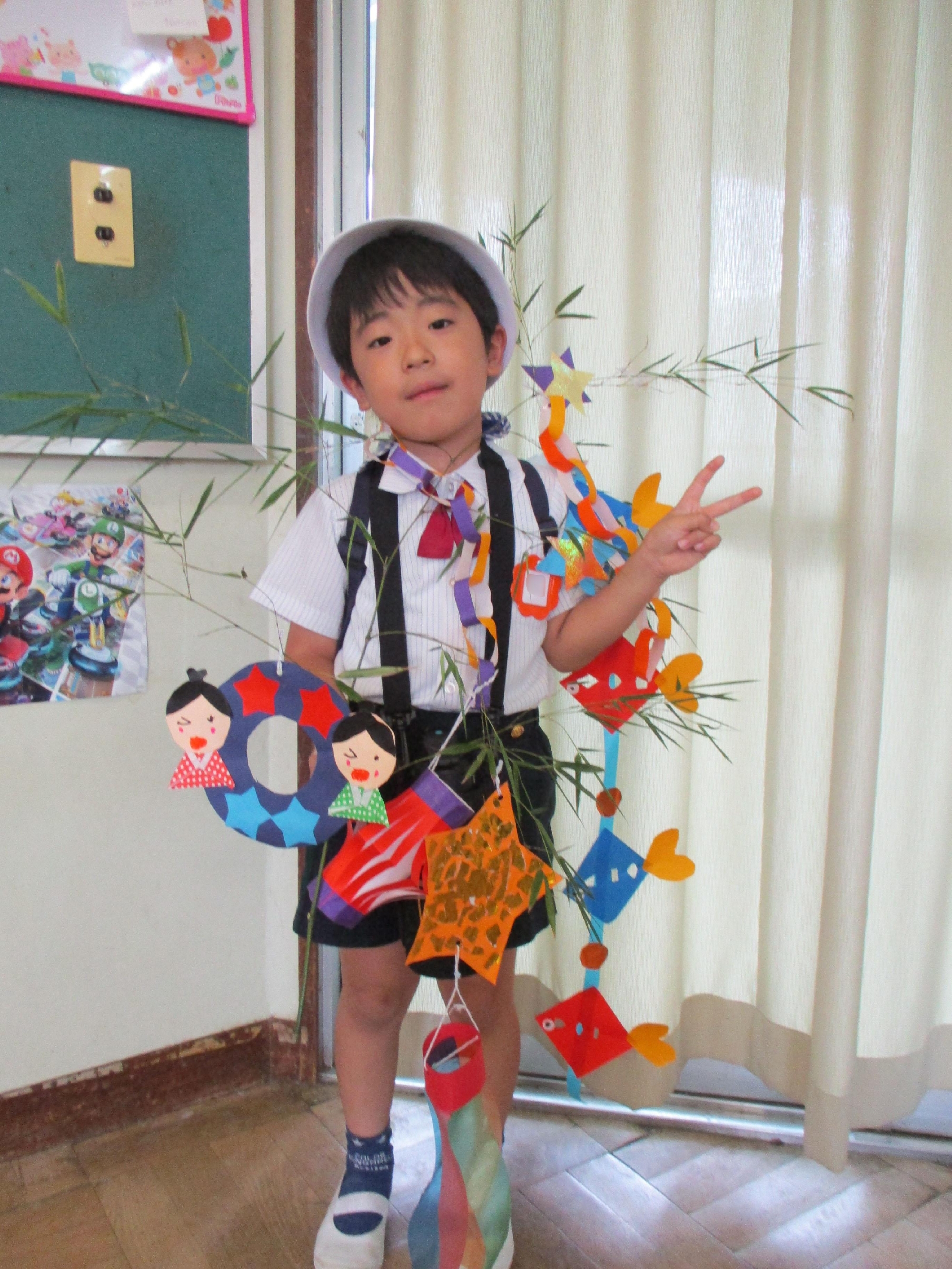 年長さんは一人ひとり自分だけの笹飾りを作り、お持ち帰りをします。みんなの願いがお空の上に届きますように。